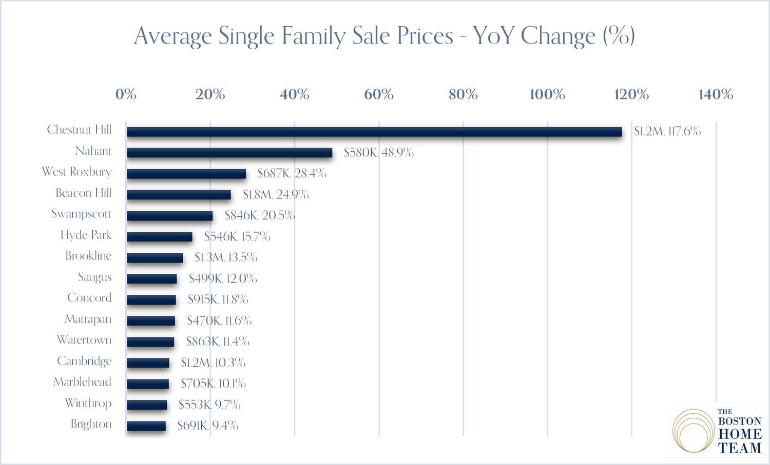 Somerville (+13.5%, 116 sales) - Newton (+12.9%, 320 sales)