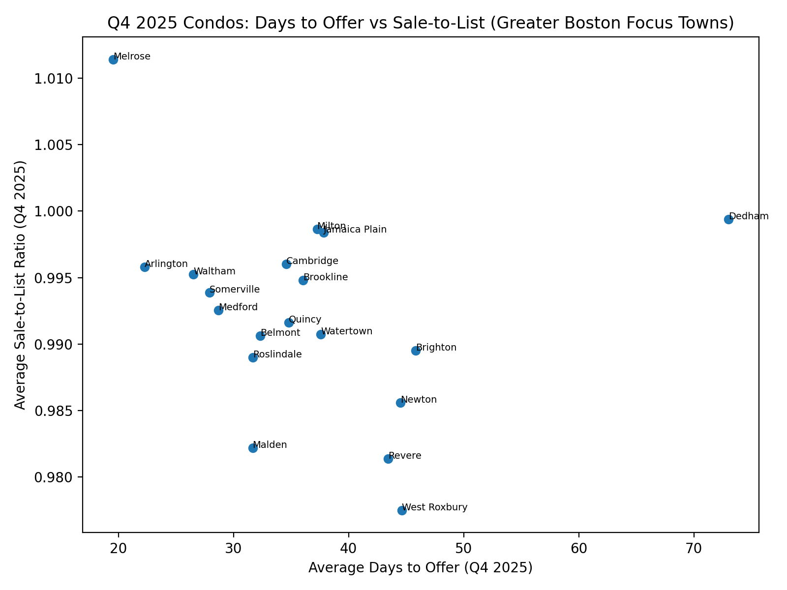 👉 From Arlington and Medford to Malden and Quincy, buyers see a range of price points, but a common pattern: well-priced condos still sell quickly and near asking, with the most intense competition in Arlington and steady, budget-friendlier options in Malden and Quincy.