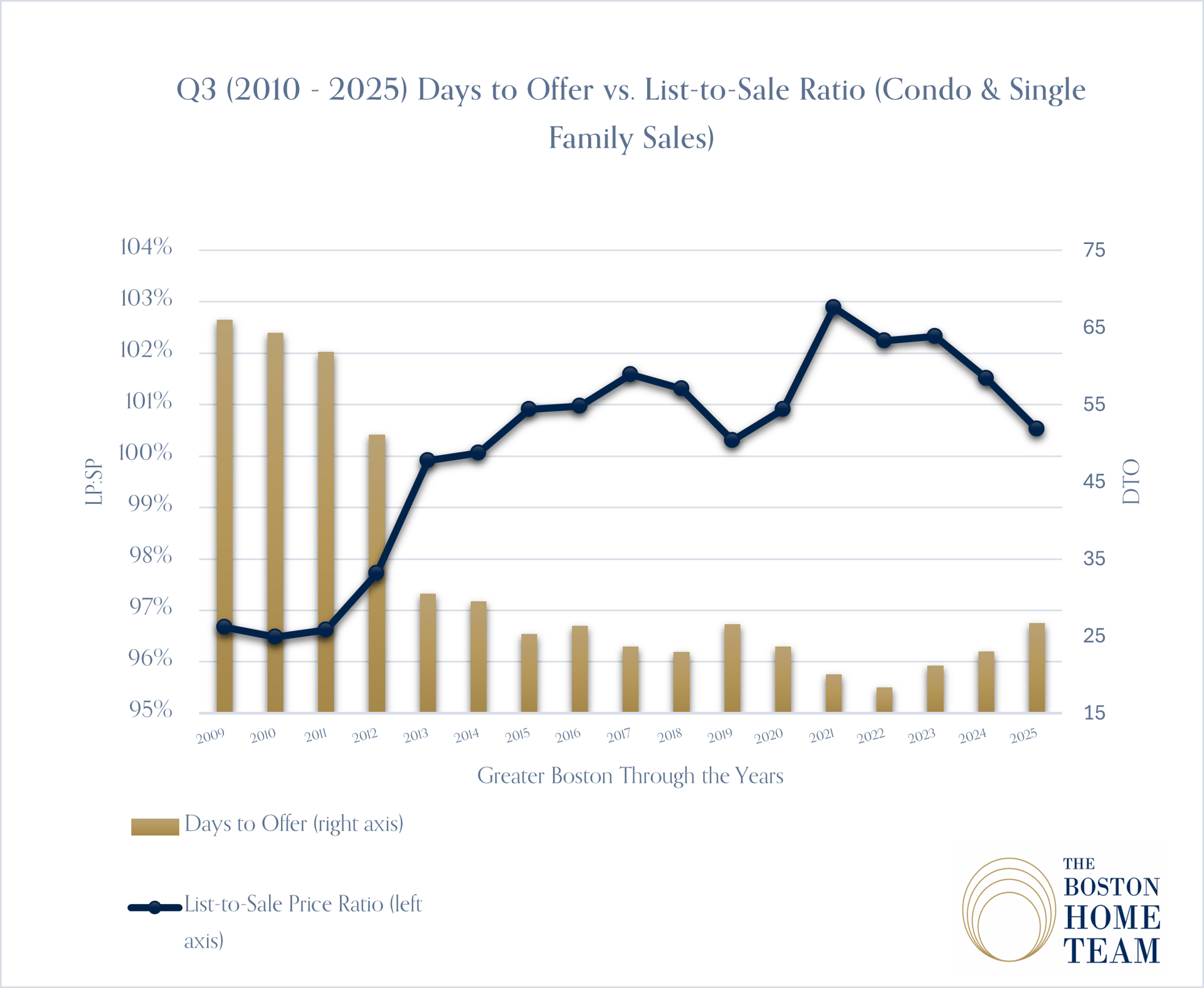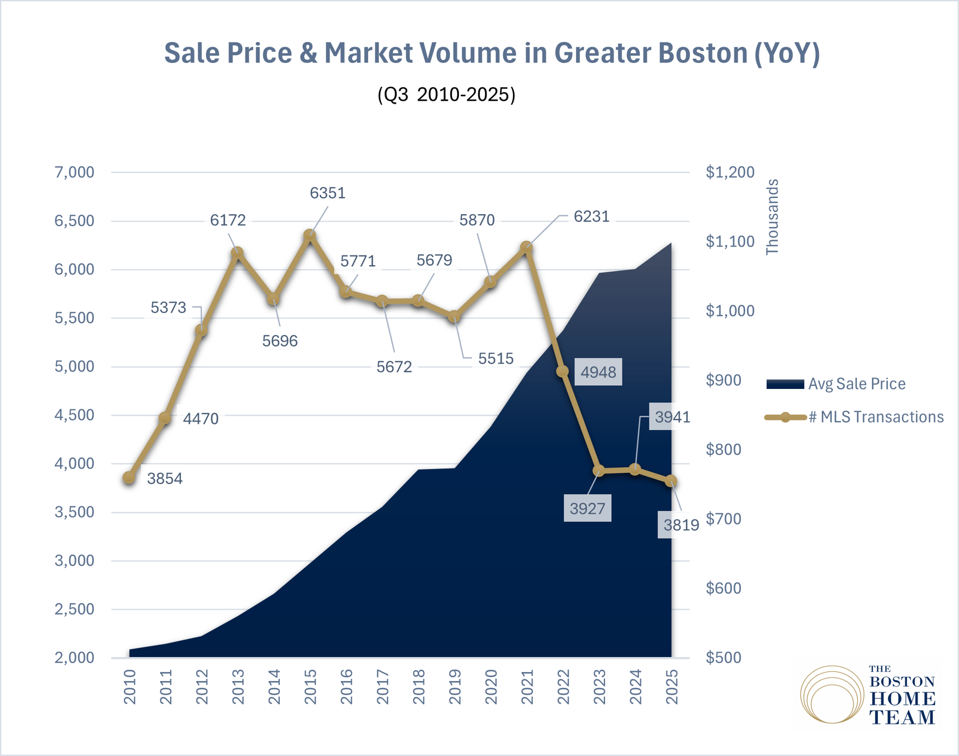 The Greater Boston housing market in Q3 2025 tells two stories: luxury towns and urban cores continued to set record prices, while mid-tier suburbs gained momentum with faster-moving demand and competitive bidding. With Q4 ahead, historical data from late 2024 points toward a familiar seasonal slowdown.