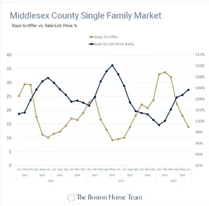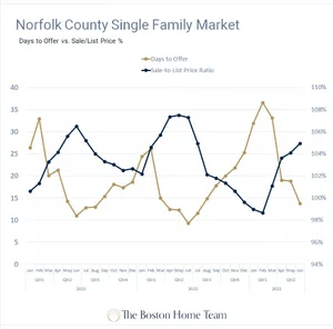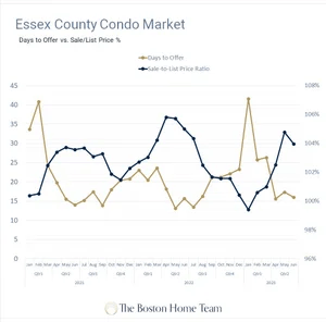 Sale-to-List Ratio, which reflects how much above or below the average list prices homes are selling, gives some insight into the market’s exuberance. The average days to offer reflects how quickly things are getting scooped up. There’s usually a correlation between the two. If you look at the graphs below, you’ll see that this year there’s an inverse of a typical spring. Yes, at tail end of June there’s an inflection, but it’s less pronounced and, as we head into the dog days of summer, that should return to longer days to offer and purchase prices closer to their list.
