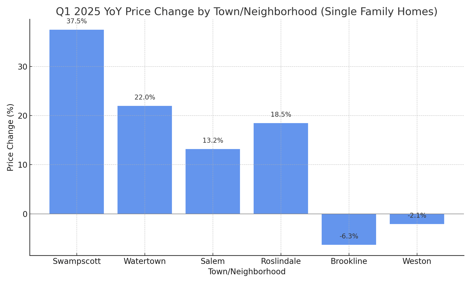 Swampscott had a GREAT first quarter in 2025, while towns like Brookline and Weston lost some ground.